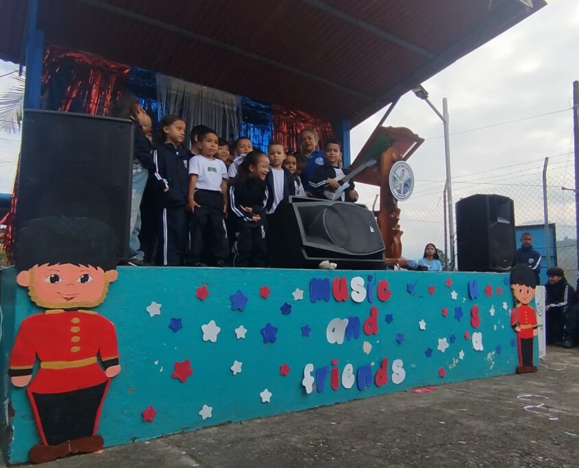 The event was filled with dynamic and engaging activities that made every student a protagonist. It began with various choreographies performed by different grades, each showcasing unique rhythm and energy. Later, a “carousel-style” environment allowed groups to rotate through different stations where they enjoyed participation games such as bingo, word searches, dancing, and singing. There were also musical performances and English videos that highlighted the effort and dedication of everyone involved.